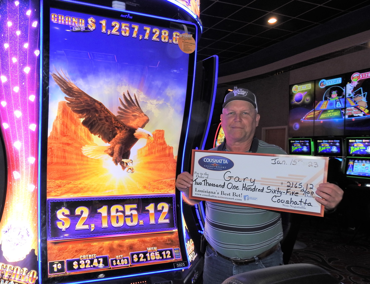 Congratulations to Gary--on January 15, 2023 this lucky guest hit the jackpot while playing the Buffalo Diamond slot game and won $2,165!