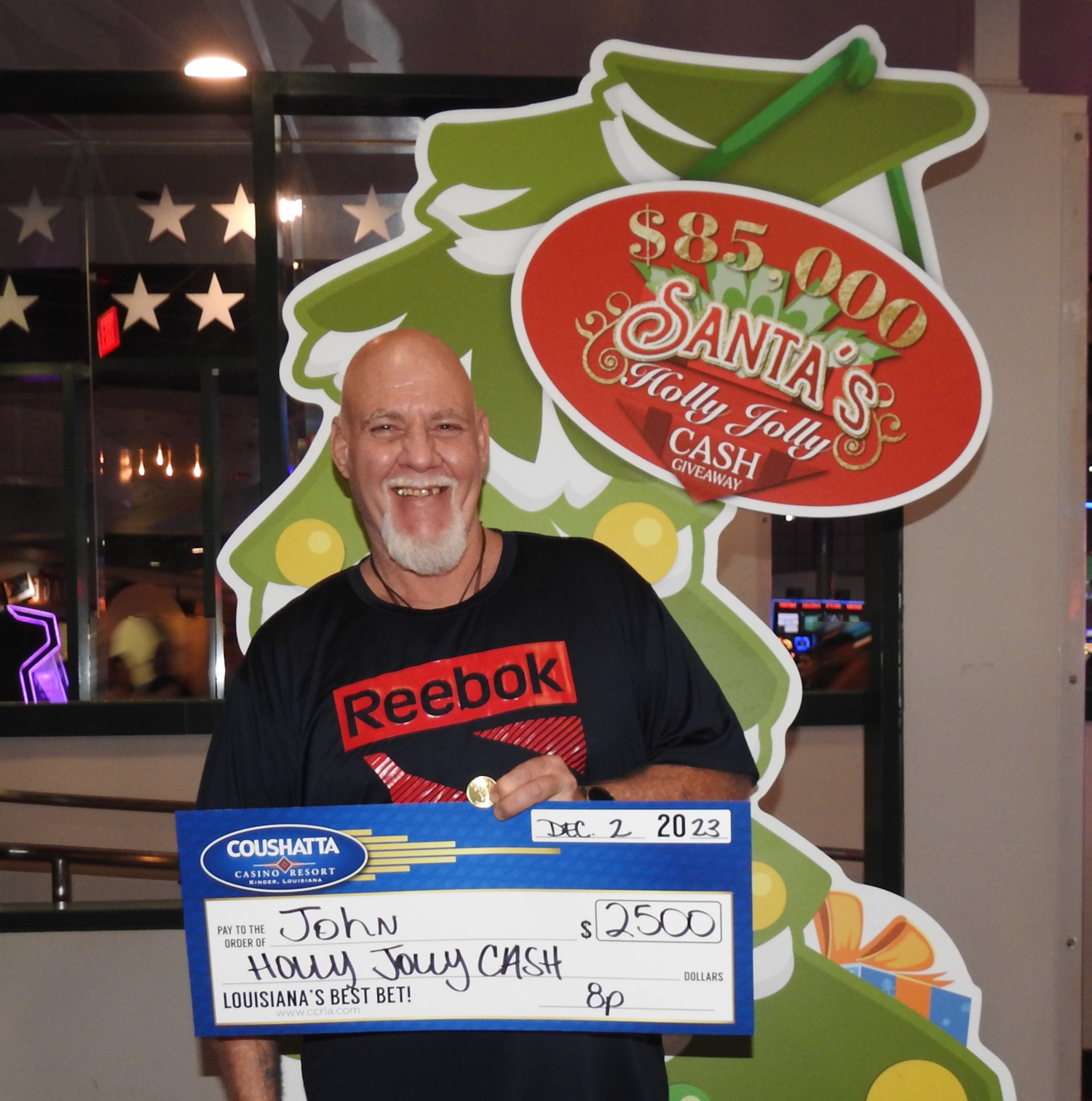 Congratulations to John--on December 2, 2023 this lucky guest hit the jackpot while playing in the $85,000 Santa's Holly Jolly Cash Giveaway and won $2,500!