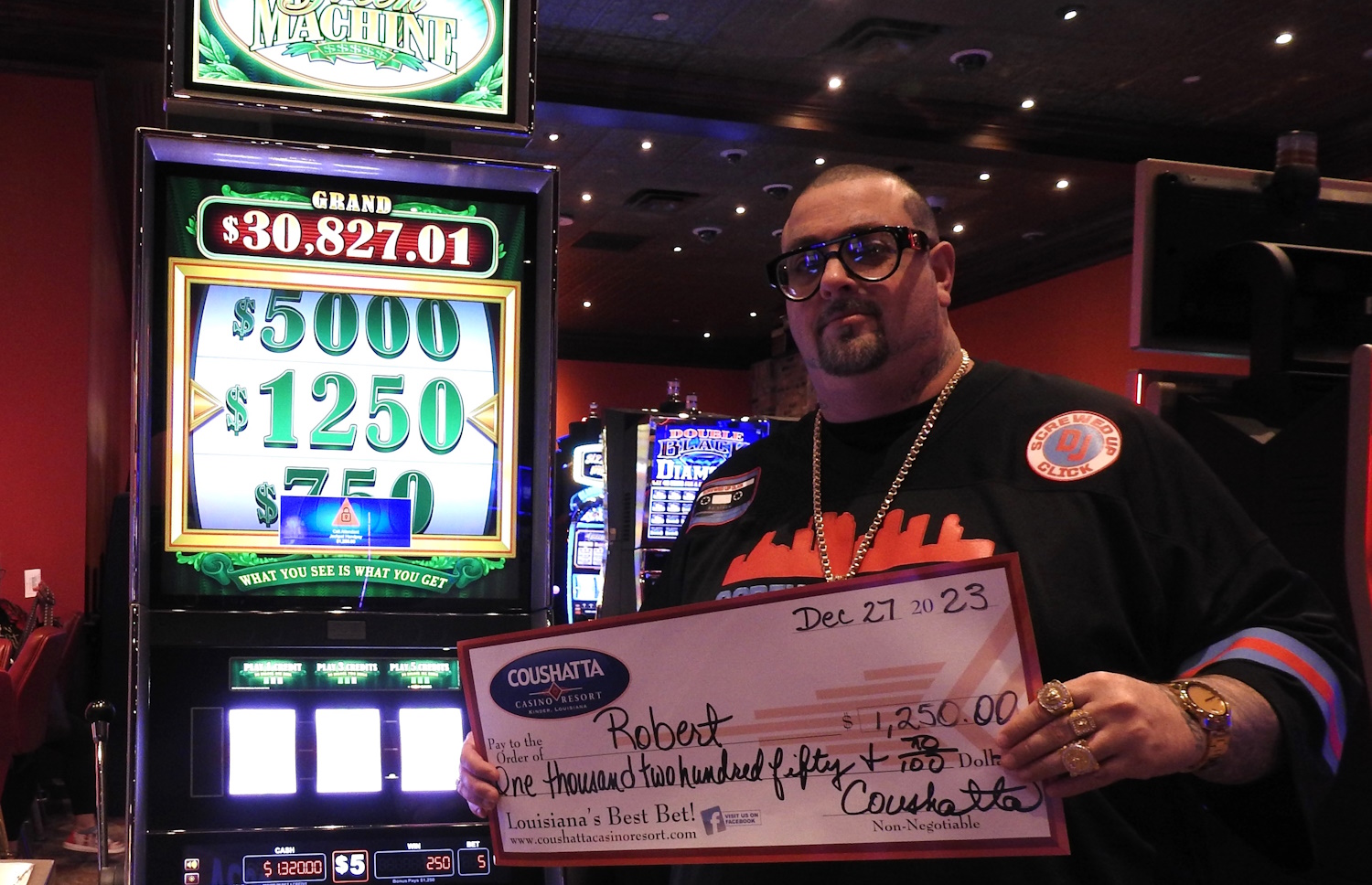 Congratulations to Robert--on December 27, 2023 this lucky guest hit the jackpot while playing the Green Machine slot game and won $1,250!