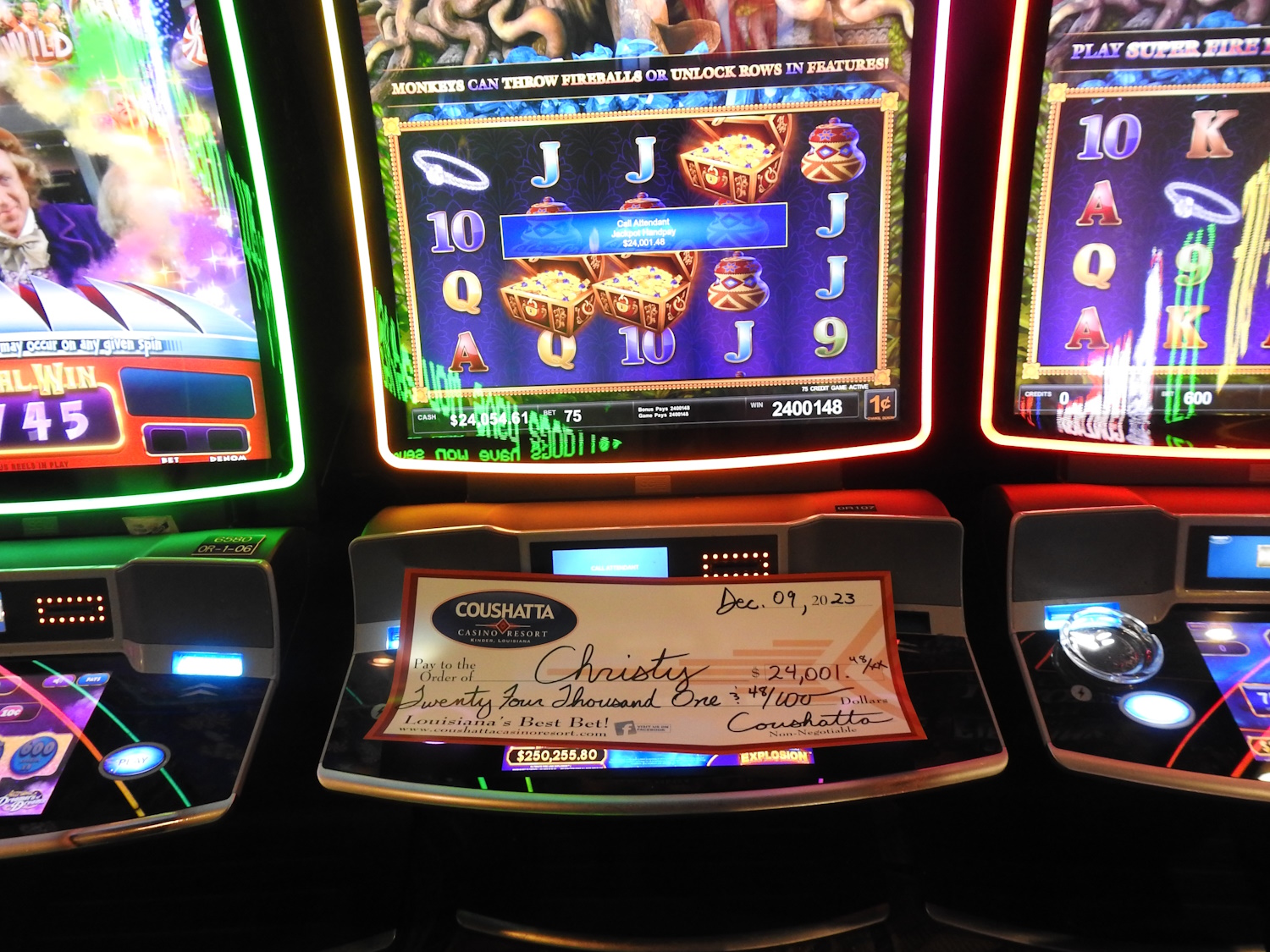 Congratulations to Christy--on December 5, 2023 this lucky guest hit the jackpot while playing the Ultimate Fire Link Explosion slot game and won $24,001!