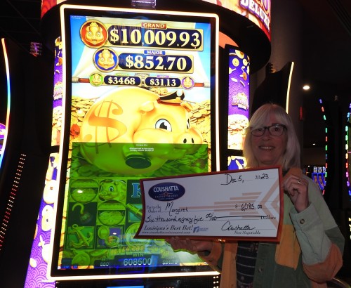 Congratulations to Margaret--on December 5, 2023 this lucky guest hit the jackpot while playing the Rakin' Bacon slot game and won $6,085!