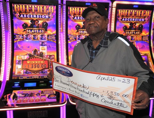 Congratulations to Derrick--on April 25, 2023 this lucky guest hit the jackpot while playing the Buffalo Ascension slot game and won $1,350!
