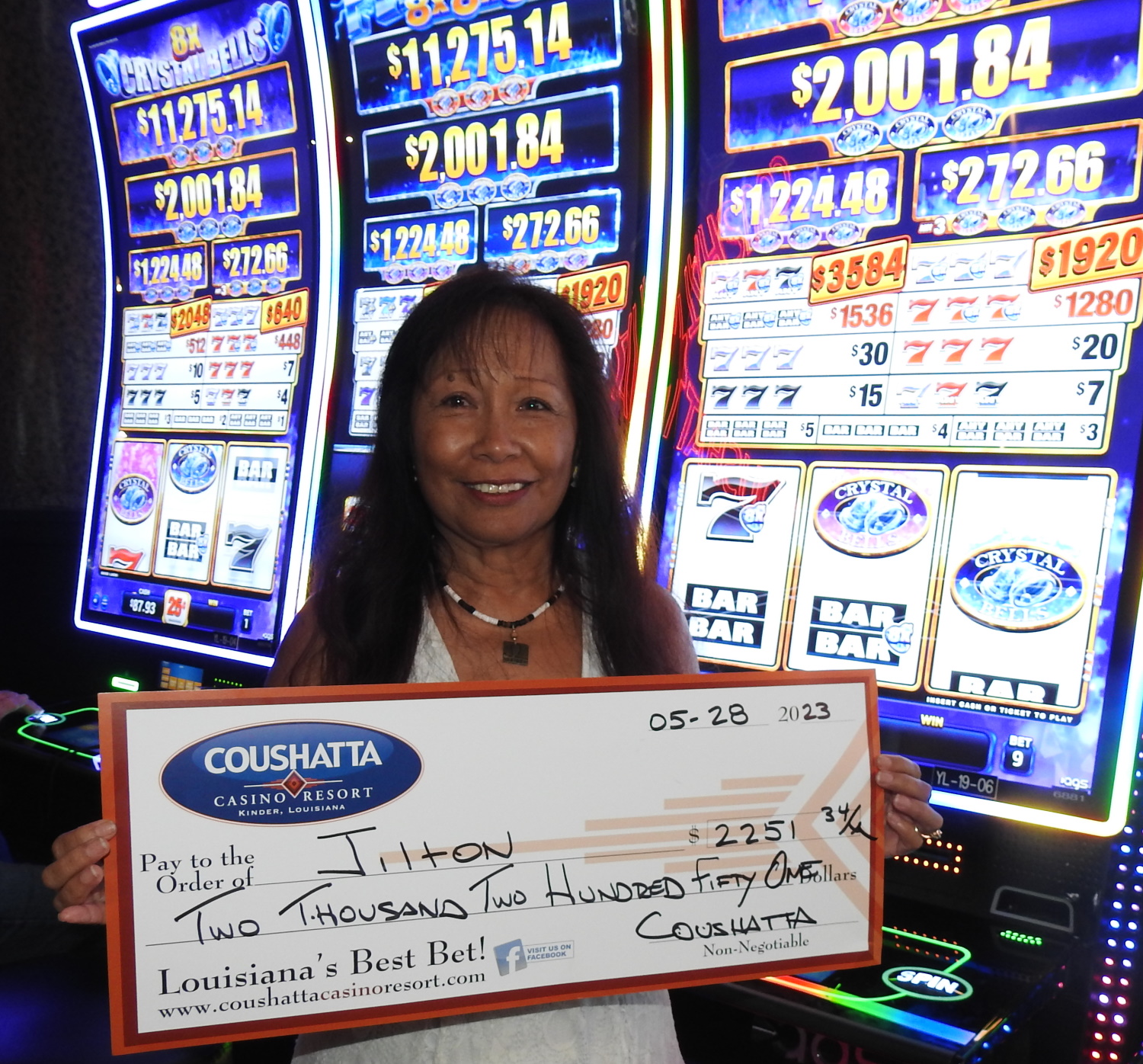 Congratulations to Jilton--on May 28, 2023 this lucky guest hit the jackpot while playing the Crystal Bells slot game and won $2,251!