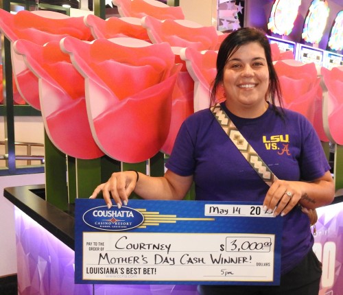 Congratulations to Courtney--on May 14, 2023 this lucky guest hit the jackpot while playing in the $100,000 Mother's Day Bouquet of Cash Giveaway and won $3,000!