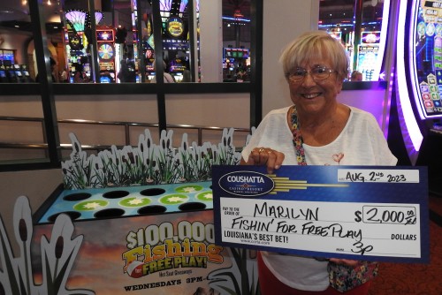 Congratulations to Marilyn--on August 2, 2023 this lucky guest hit the jackpot while playing in the $100,000 Fishing for Free Play Giveaway and won $2,000 in Free Slot Play!