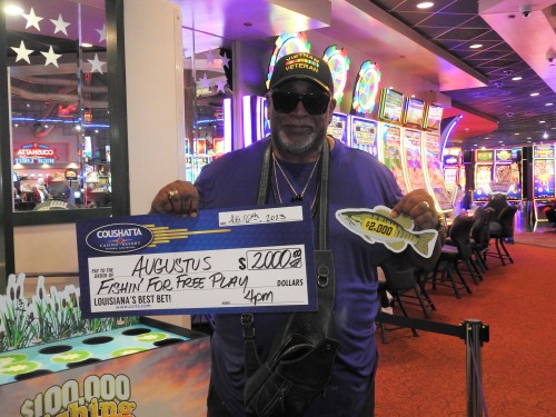 Congratulations to Augustus--on August 16, 2023 this lucky guest hit the jackpot while playing in the $100,000 Fishing for Free Play Giveaway and won $2,000 in Free Play!