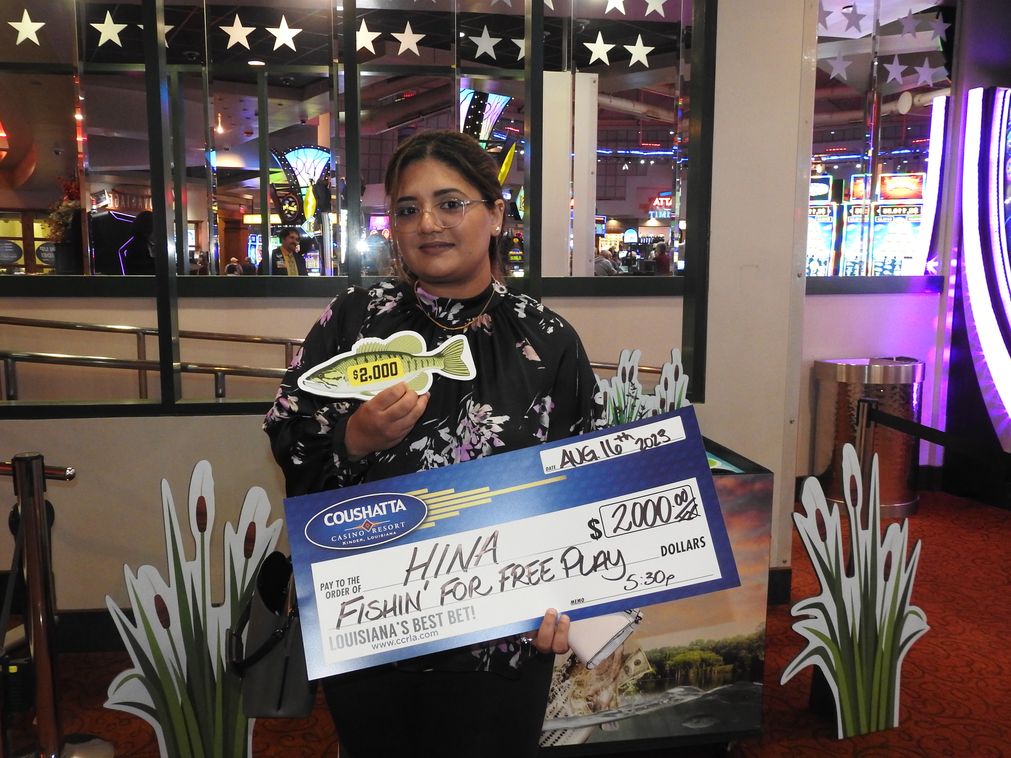 Congratulations to Hina--on August 16, 2023 this lucky guest hit the jackpot while playing in the $100,000 Fishing for Free Play Giveaway and won $2,000 in Promo Chips!