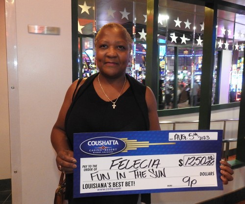 Congratulations to Felecia--on August 5, 2023 this lucky guest hit the jackpot while playing in the $200,000 Fun in the Sun Giveaway and won $1,250!