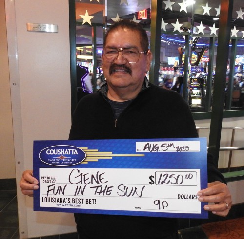 Congratulations to Gene--on August 5, 2023 this lucky guest hit the jackpot while playing in the $200,000 Fun in the Sun Giveaway and won $1,250!