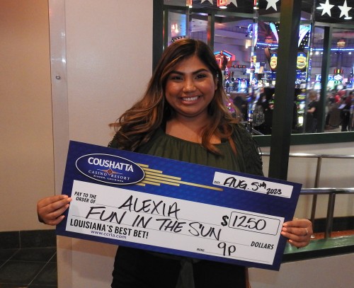 Congratulations to Alexia--on August 5, 2023 this lucky guest hit the jackpot while playing in the $200,000 Fun in the Sun Giveaway and won $1,250!