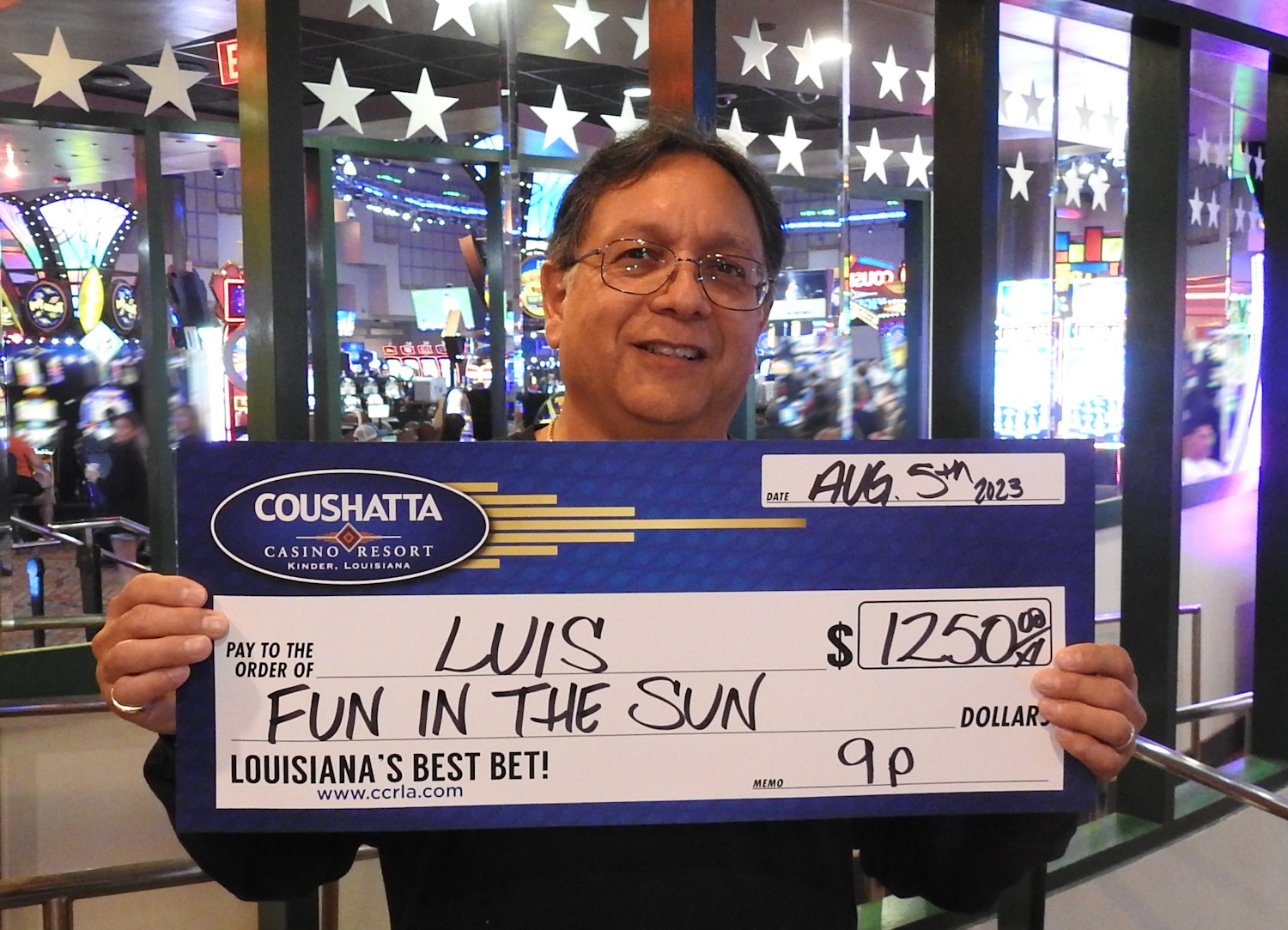 Congratulations to Luis--on August 5, 2023 this lucky guest hit the jackpot while playing in the $200,000 Fun in the Sun Giveaway and won $1,250!