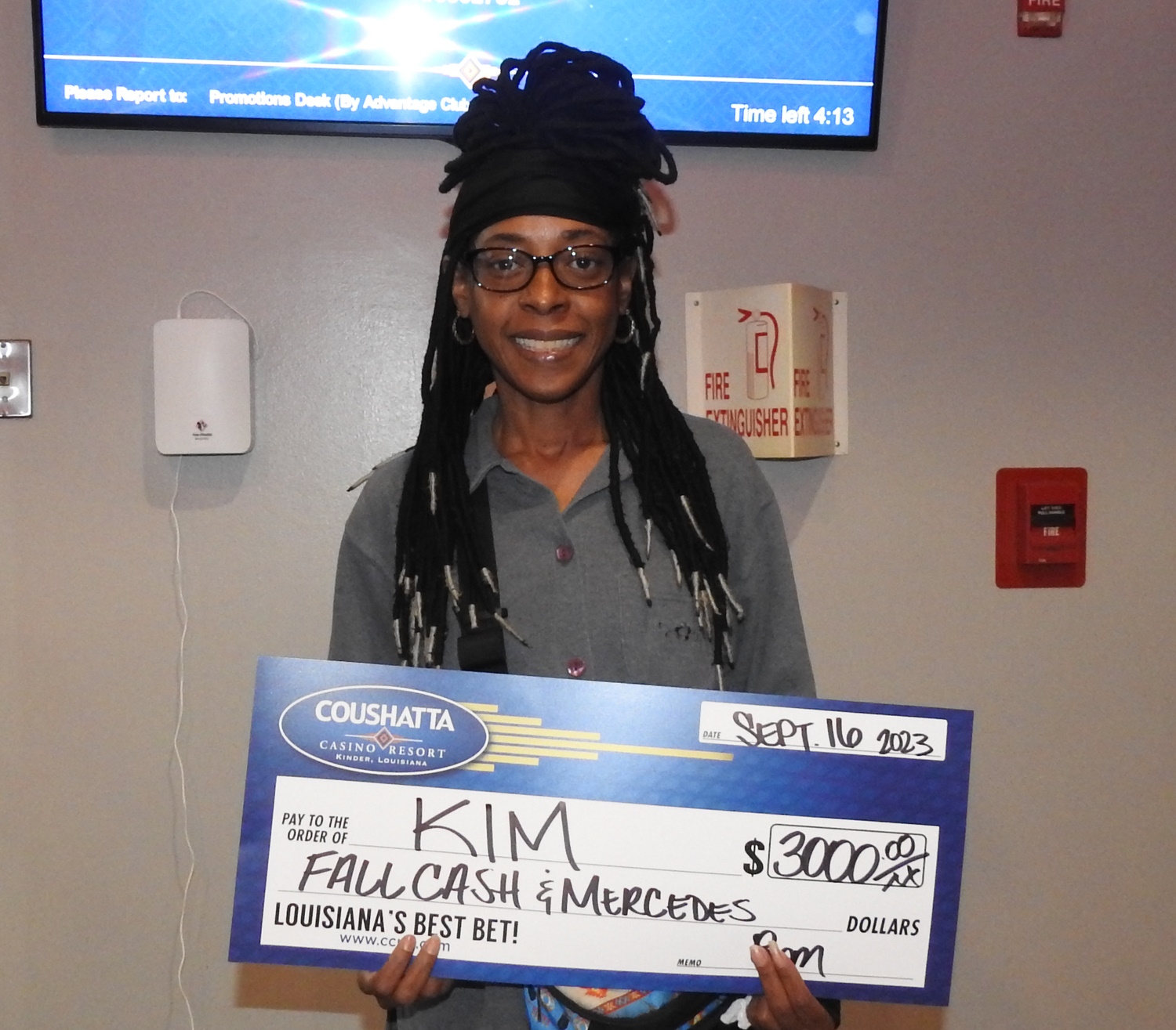 Congratulations to Kim--on September 16, 2023 this lucky guest hit the jackpot while playing in the $125,000 Fall Cash & Mercedes Giveaway and won $3,000!