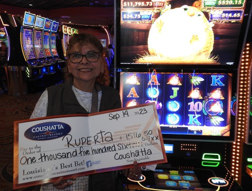 Congratulations to Ruperta--on September 14, 2023 this lucky guest hit the jackpot while playing the Cluck Cluck Cash slot game and won $1,516!