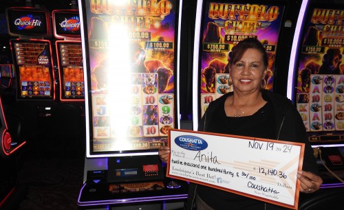 Congratulations to Anita--on November 19, 2024 this lucky guest hit the jackpot while playing the Buffalo Chief slot game and won $12,140!