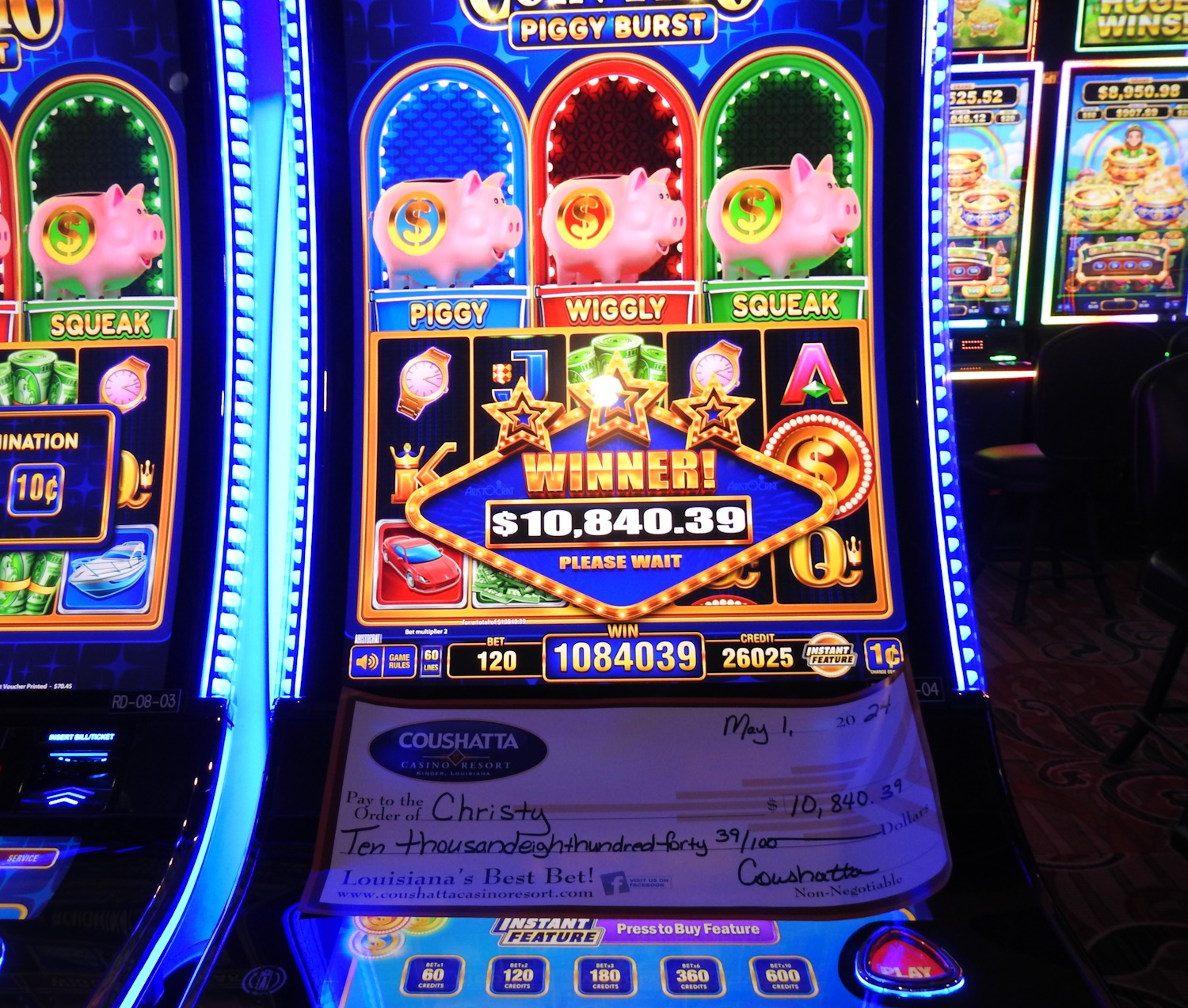 Congratulations to Christy--on May 1, 2024 this lucky guest hit the jackpot while playing the Coin Trio slot game and won $10,840!
