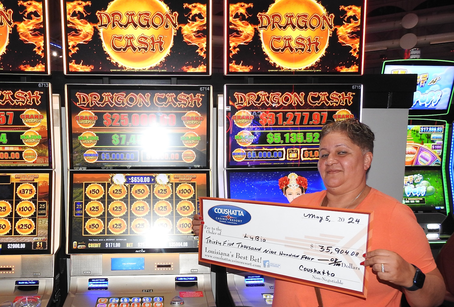 Congratulations to Lybia--on May 5, 2024 this lucky guest hit the jackpot while playing the Dragon Cash slot game and won $35,904!