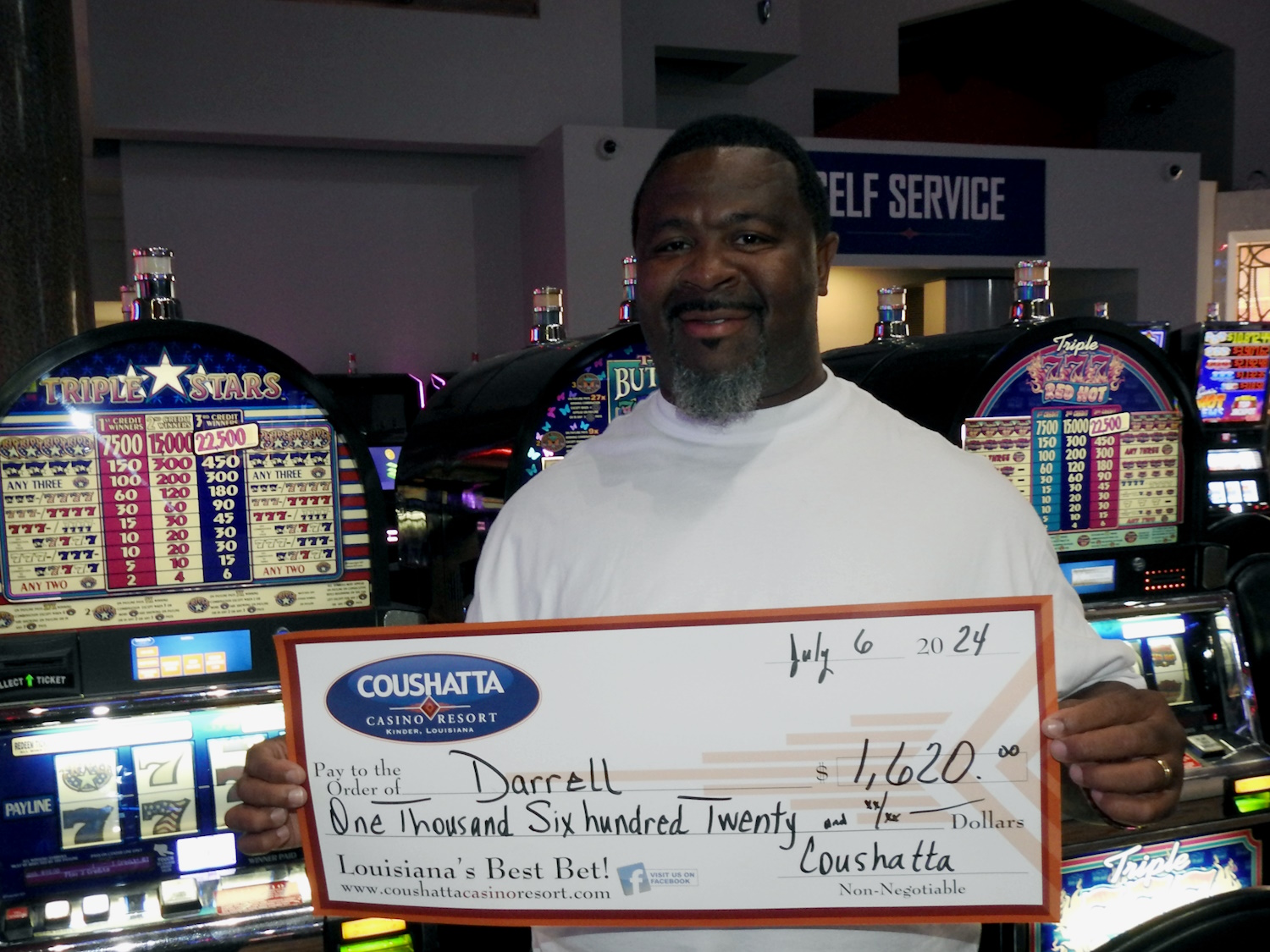 Congratulations to Darrell--on July 6, 2024 this lucky guest hit the jackpot while playing the Triple Stars slot game and won $1,620!