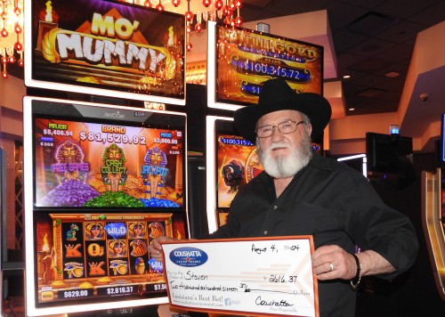 Congratulations to Steven--on August 4, 2024 this lucky guest hit the jackpot while playing the Mo Mummy slot game and won $2,616!