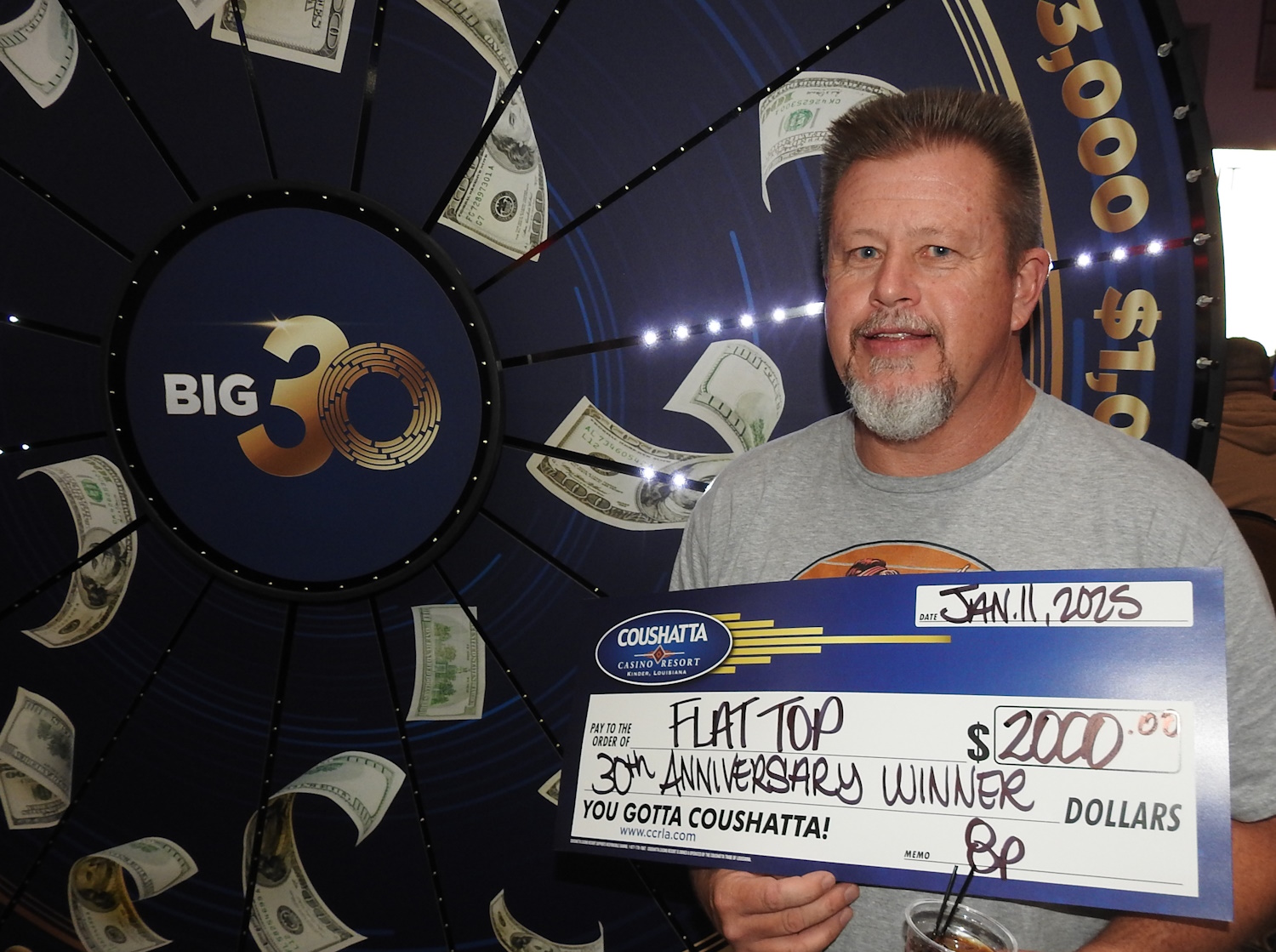 Congratulations to "Flat Top"--on January 11, 2025 this lucky guest hit the jackpot while playing in the $330,000 30th Anniversary Celebration Cash Giveaways and won $2,000!
