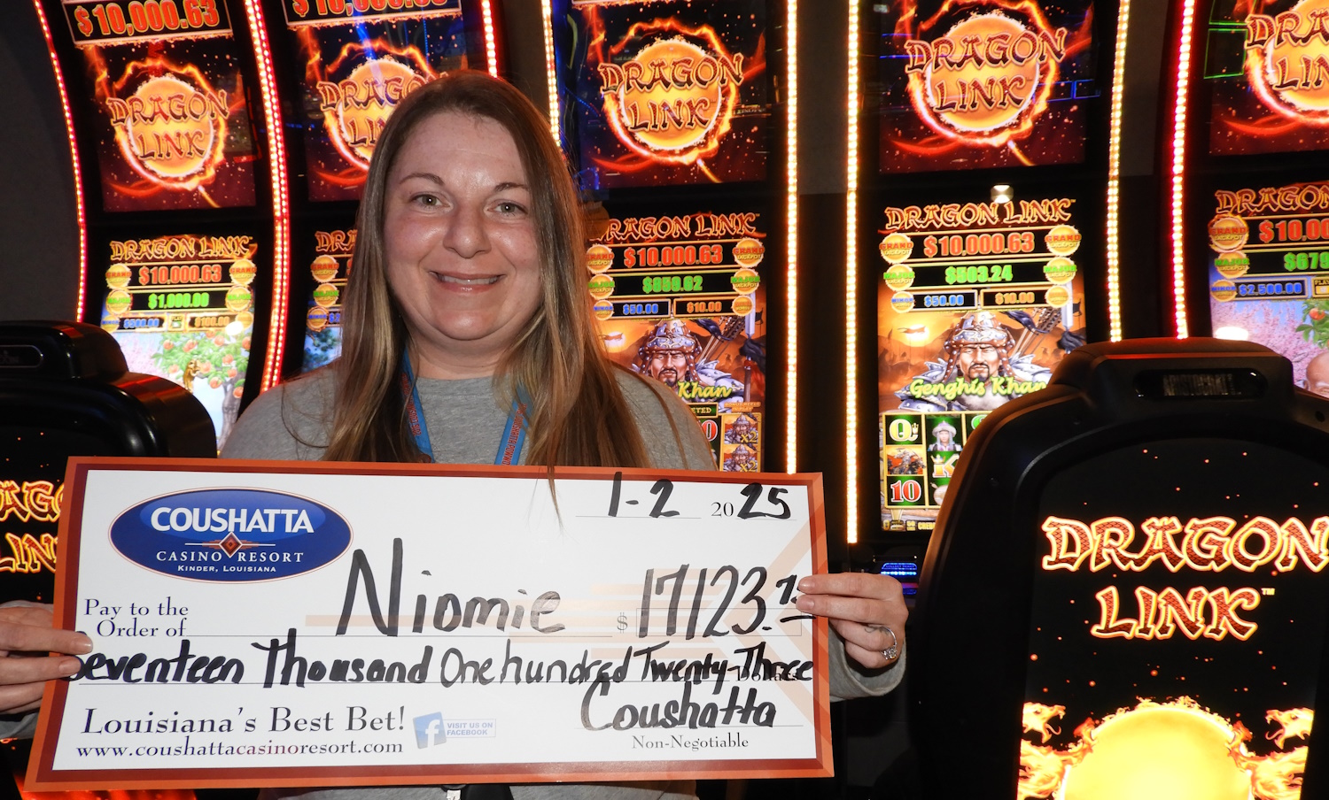 Congratulations to Niomie--on January 2, 2025 this lucky guest hit the jackpot while playing the Dragon Link slot game and won $17,123!