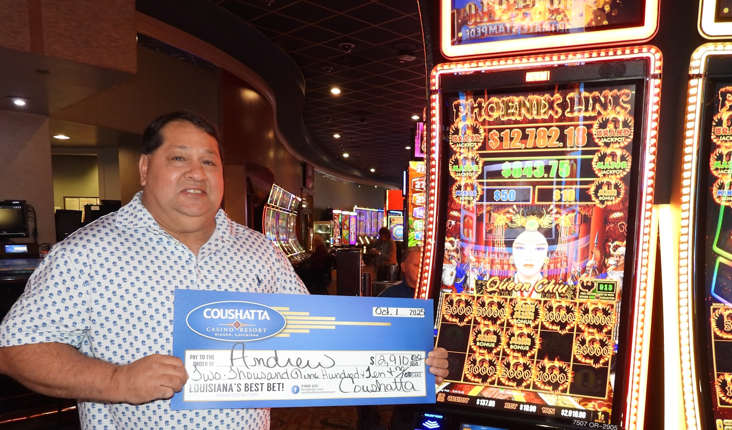 Congratulations to Andrew--on October 1, 2025 this lucky guest hit the jackpot while playing the Phoenix Link slot game and won $2,910!