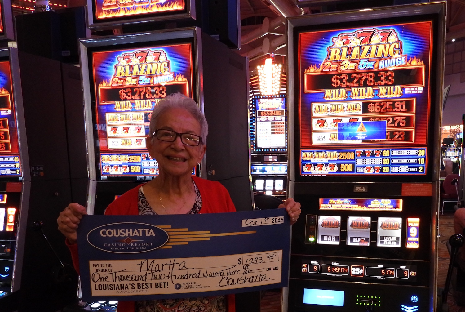 Congratulations to Martha--on October 1, 2025 this lucky guest hit the jackpot while playing the Blazing 7s slot game and won $1,293!