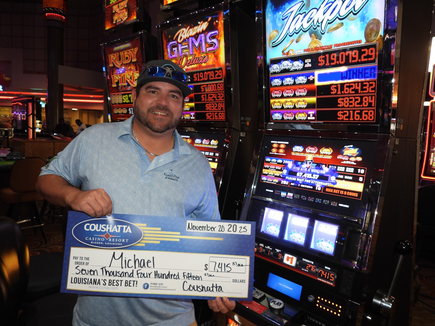 Congratulations to Michael--on November 19, 2025 this lucky guest hit the jackpot while playing the Blazing Gems Deluxe slot game and won $7,415!
