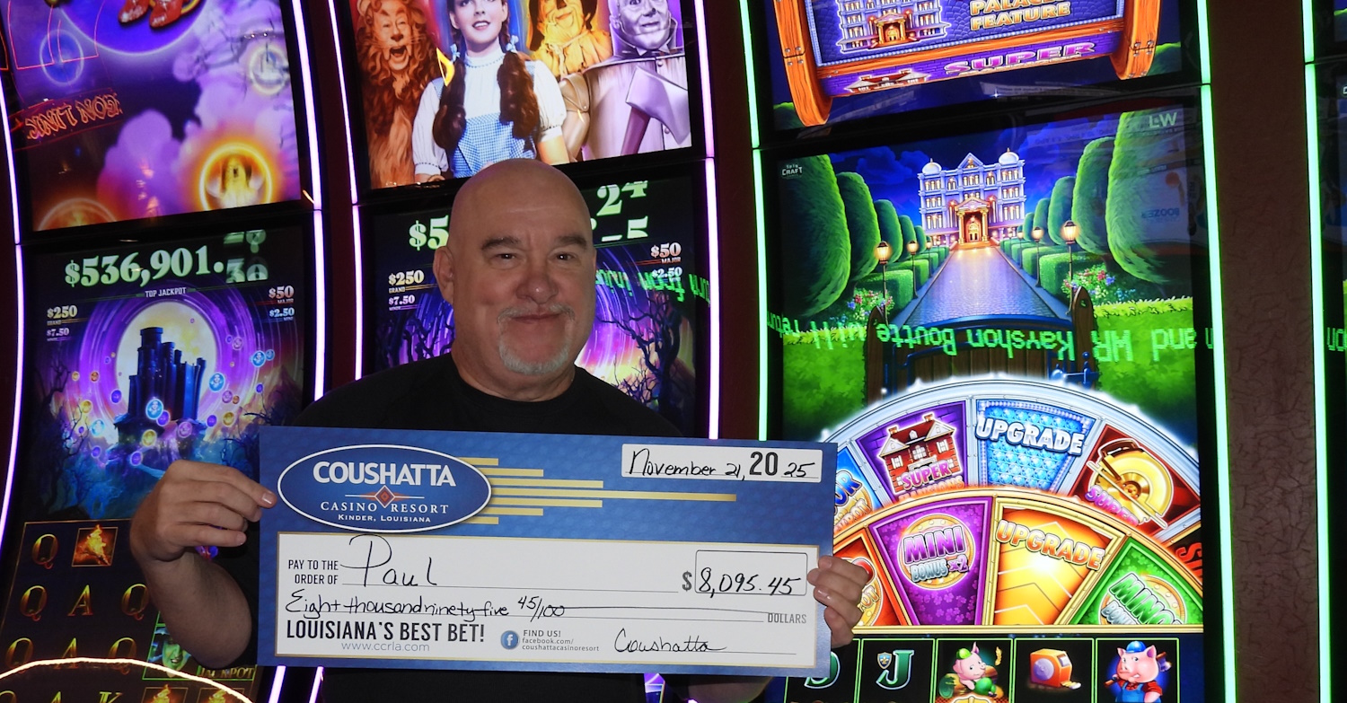 Congratulations to Paul--on November 21, 2025 this lucky guest hit the jackpot while playing the Huff n' Puff slot game and won $8,095!