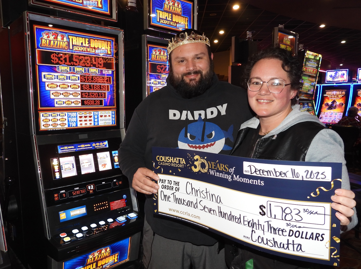 Congratulations to Christina--on December 16, 2025 this lucky guest hit the jackpot while playing the Triple Double Jackpot Wild slot game and won $1,783!