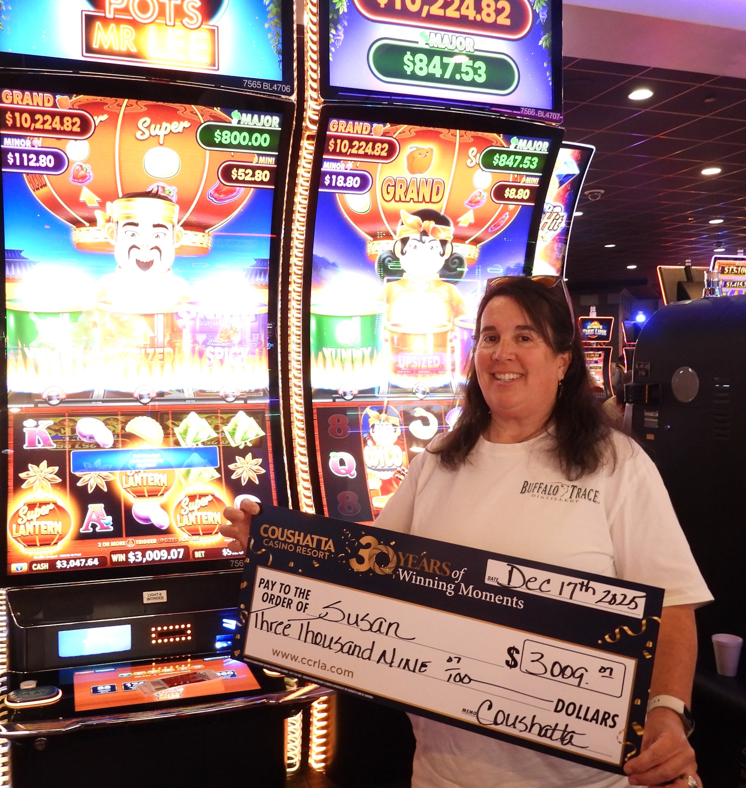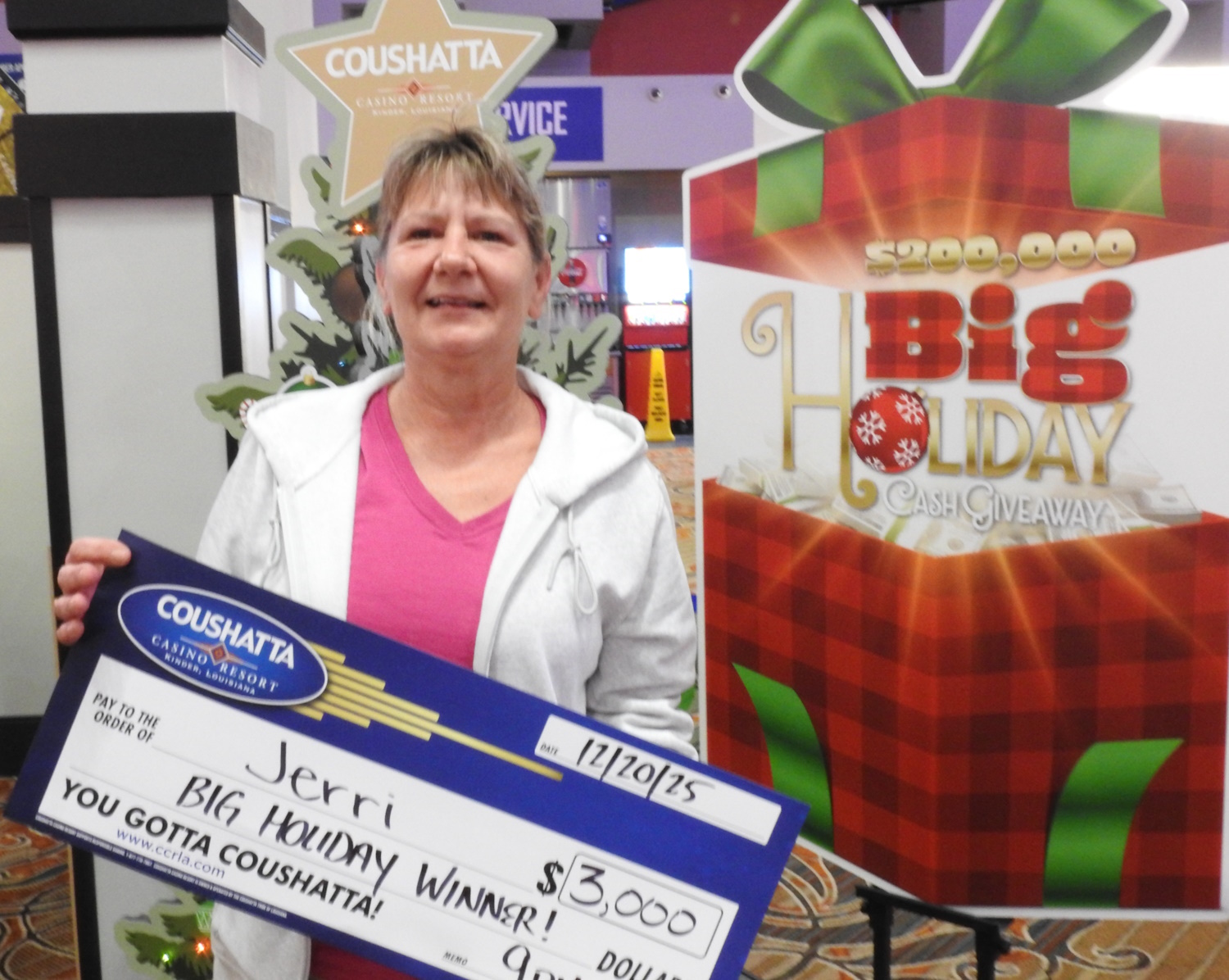 Congratulations to Jerri--on December 20, 2025 this lucky guest hit the jackpot while playing in the $200,000 Big Holiday Cash Giveaway and won $3,000!
