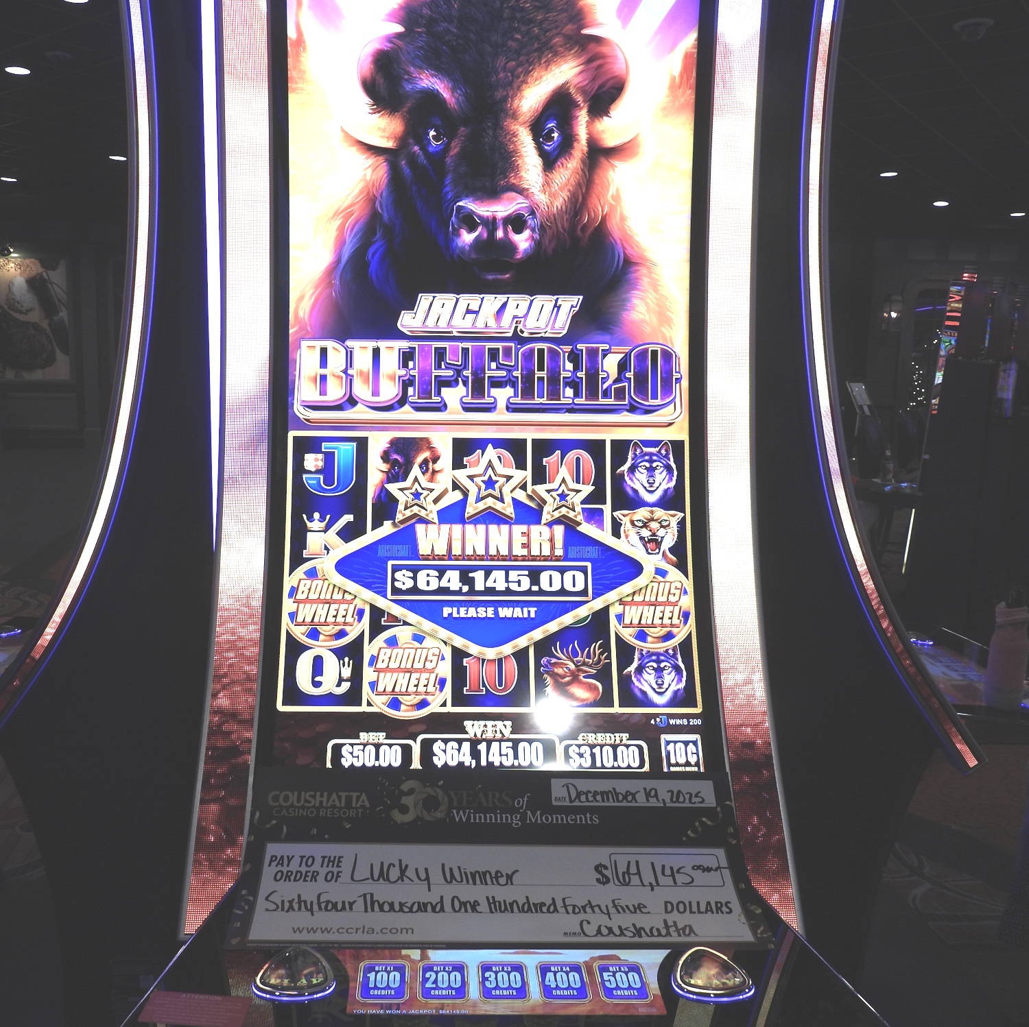 Congratulations to a Lucky Winner--on December 19, 2025 this guest hit the jackpot while playing the Jackpot Buffalo slot game and won $64,145!
