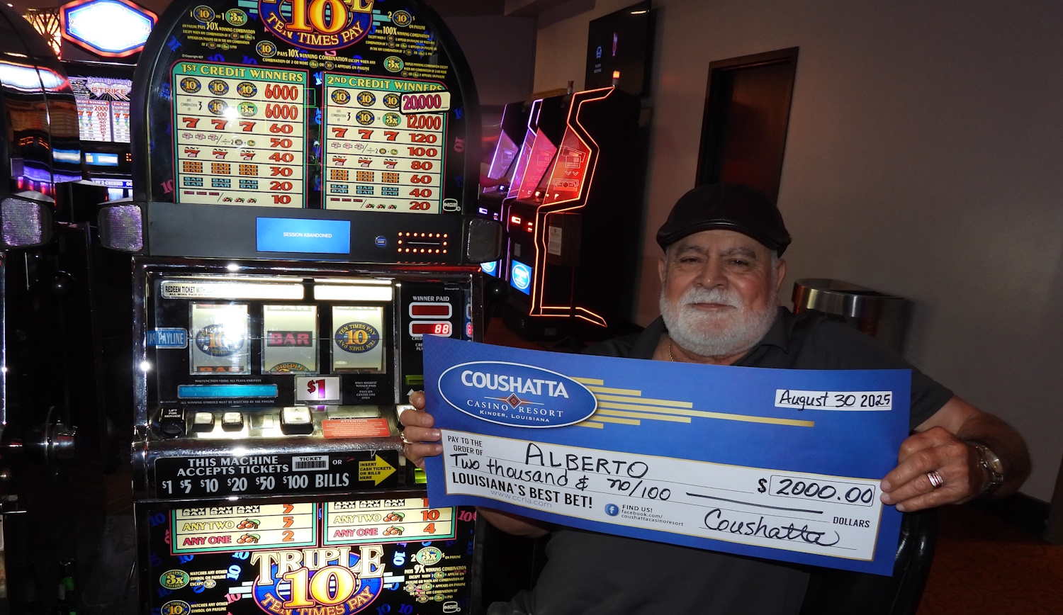 Congratulations to Alberto--on August 30, 2025 this lucky guest hit the jackpot while playing the Triple 10 X Pay slot game and won $2,000!