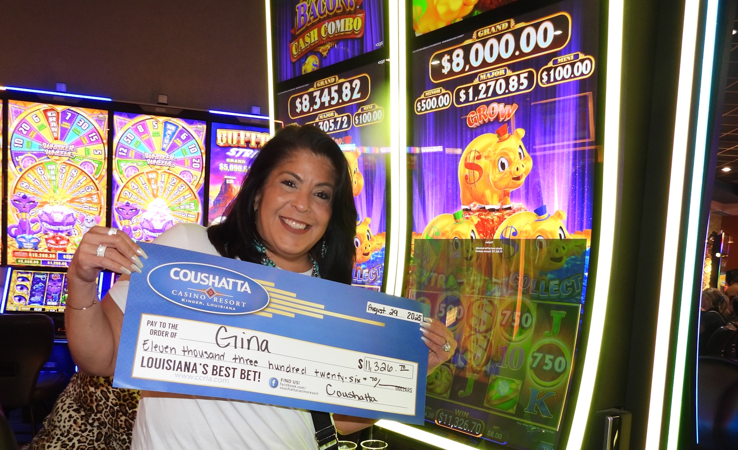 Congratulations to Gina--on August 29, 2025 this lucky guest hit the jackpot while playing the Rakin' Bacon Cash Combo slot game and won $11,326!