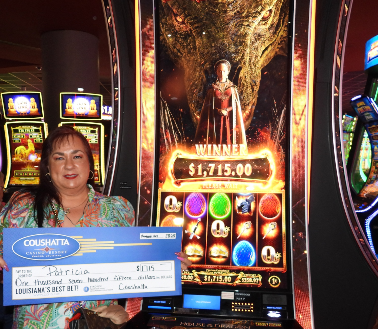Congratulations to Patricia--on August 29, 2025 this lucky guest hit the jackpot while playing the House of the Dragon slot game and won $1,715!
