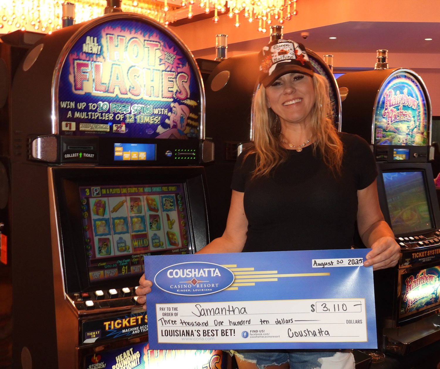 Congratulations to Samantha--on August 30, 2025 this lucky guest hit the jackpot while playing the Hot Flashes slot game and won $3,110!