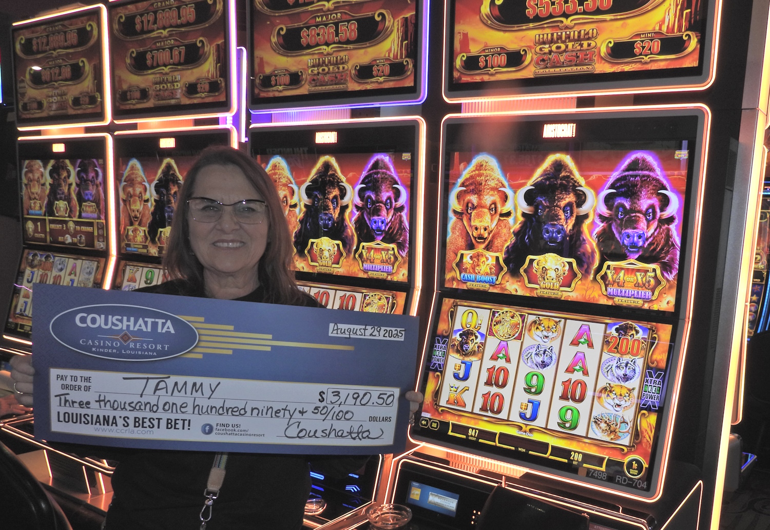 Congratulations to Tammy--on August 29, 2025 this lucky guest hit the jackpot while playing the Buffalo Gold Cash slot game and won $3,190!