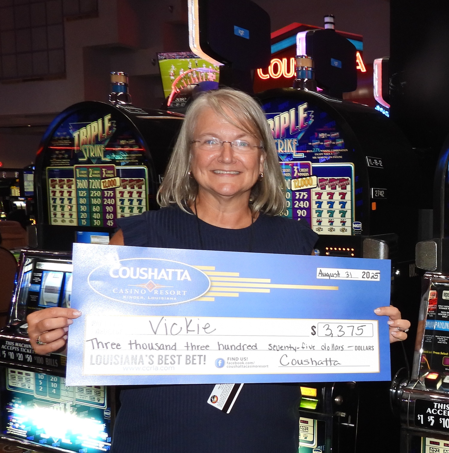 Congratulations to Vickie--on August 31, 2025 this lucky guest hit the jackpot while playing the Triple Strike slot game and won $3,375!
