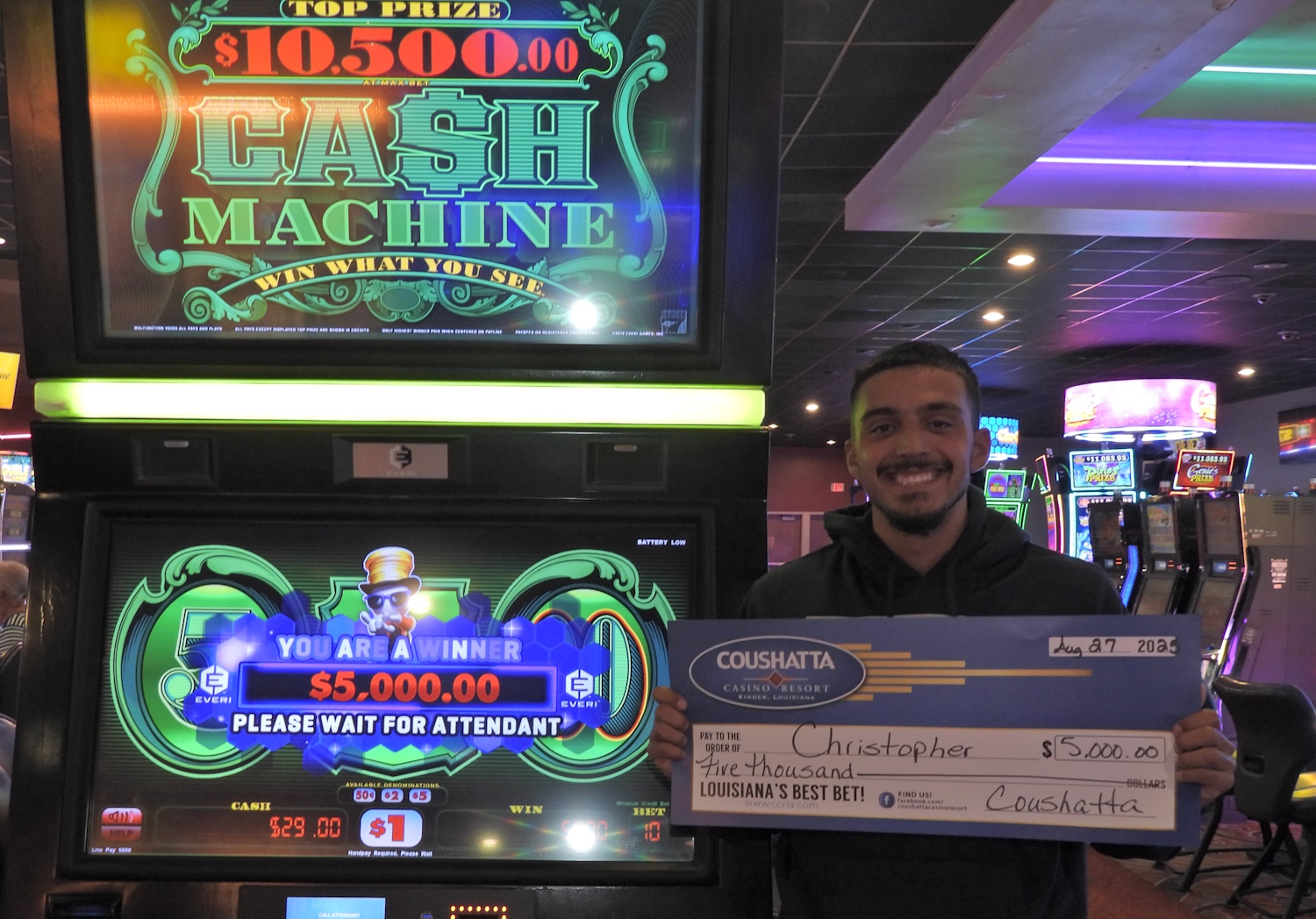 Congratulations to Christopher--on August 27, 2025 this lucky guest hit the jackpot while playing the Cash Machine slot game and won $5,000!