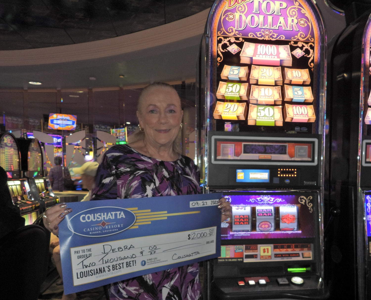 Congratulations to Debra--on September 27, 2025 this lucky guest hit the jackpot while playing the Double Top Dollar slot game and won $2,000!