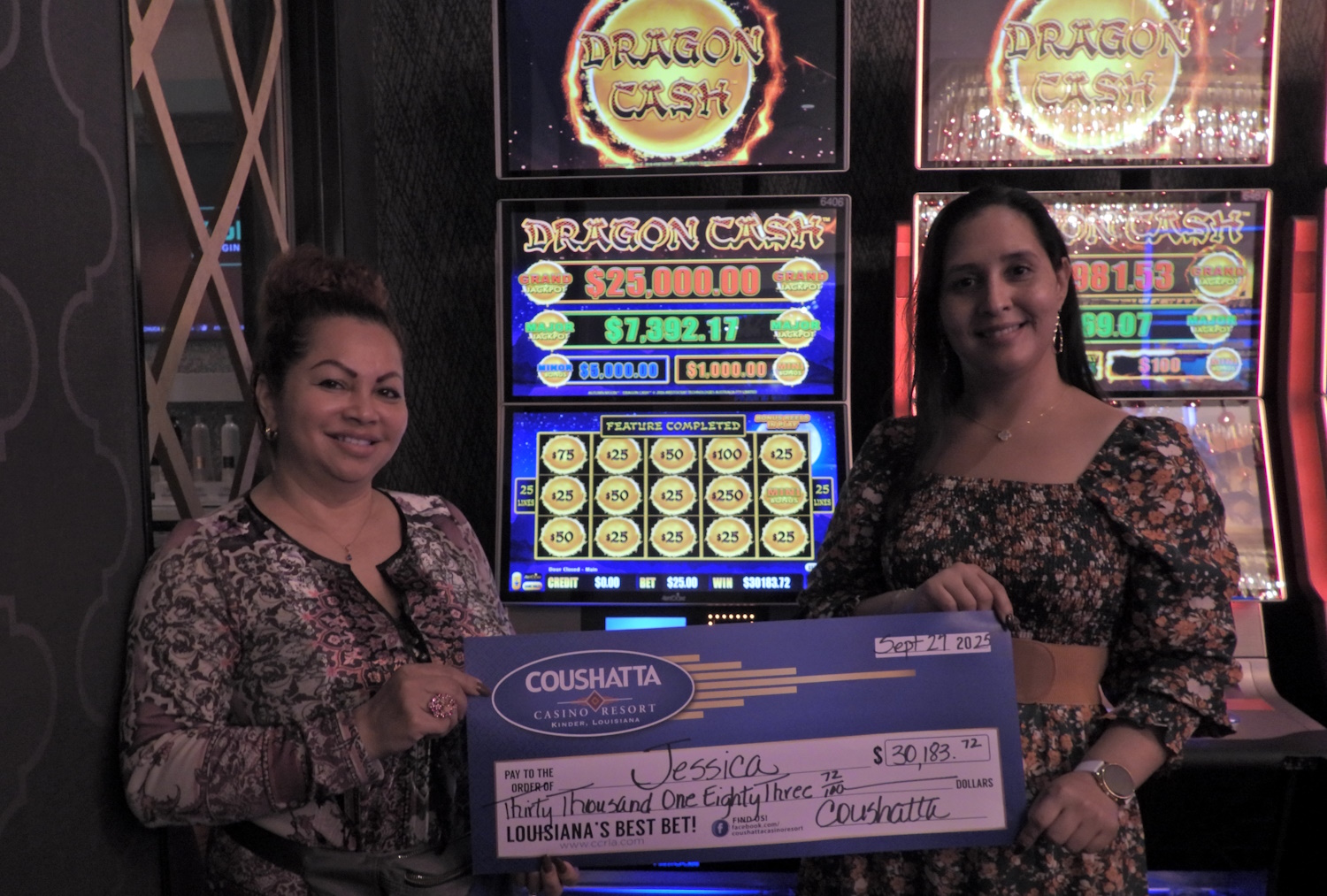 Congratulations to Jessica--on September 27, 2025 this lucky guest hit the jackpot while playing the Dragon Cash slot game and won $30,183!