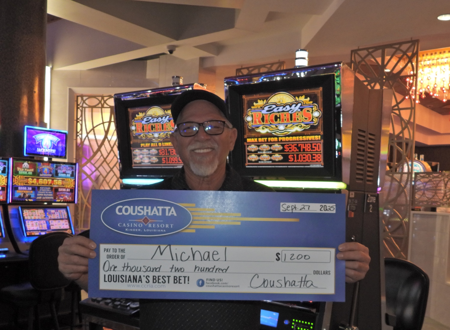 Congratulations to Michael--on September 27, 2025 this lucky guest hit the jackpot while playing the Easy Riches slot game and won $1,200!