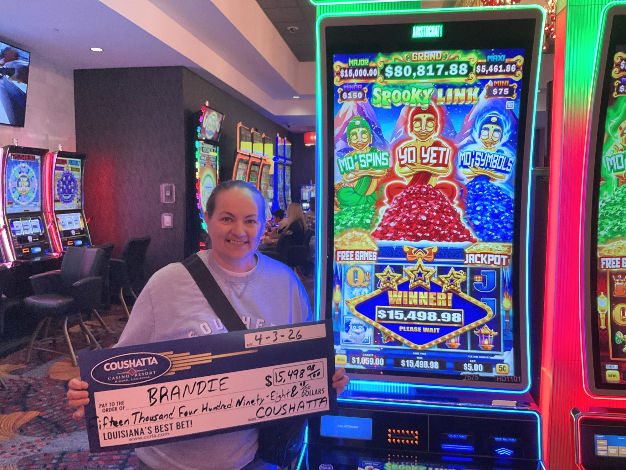 Congratulations to Brandie--on April 3, 2026 this lucky guest hit the jackpot while playing the Spooky Link slot game and won $15,499!