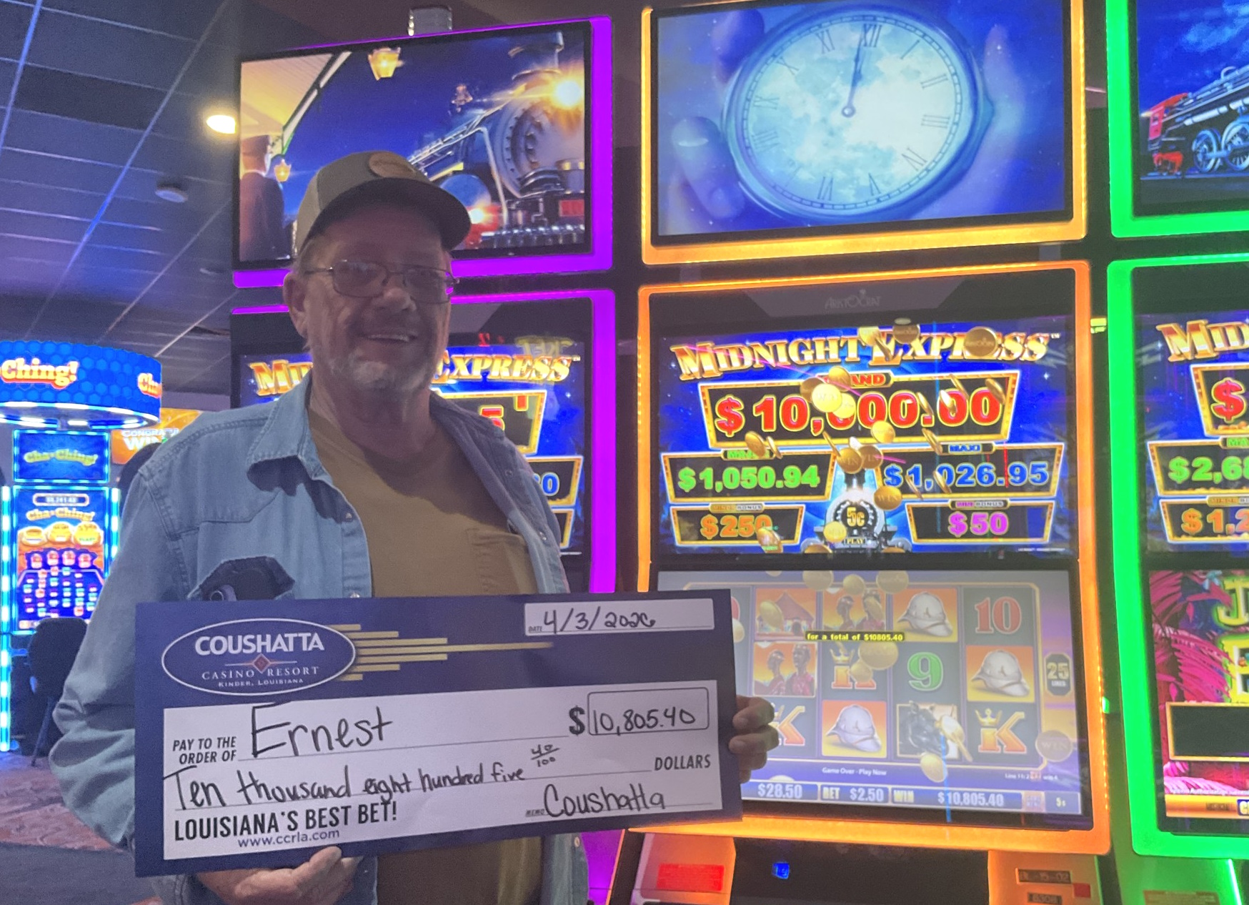 Congratulations to Ernest --on April 3, 2026 this lucky guest hit the jackpot while playing the Midnight Express slot game and won $10,805!