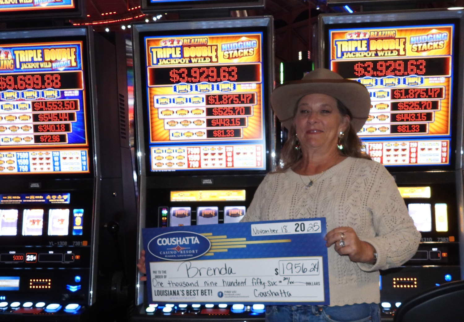 Congratulations to Brenda--on November 18, 2025 this lucky guest hit the jackpot while playing the Blazing Triple Double Nudging Stacks slot game and won $1956!