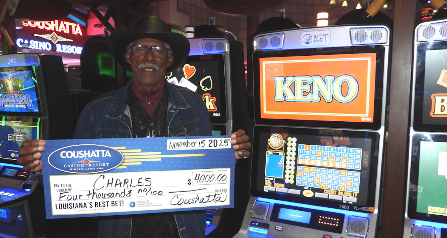 Congratulations to Charles--on November 15, 2025 this lucky guest hit the jackpot while playing the Keno game and won $4,000!