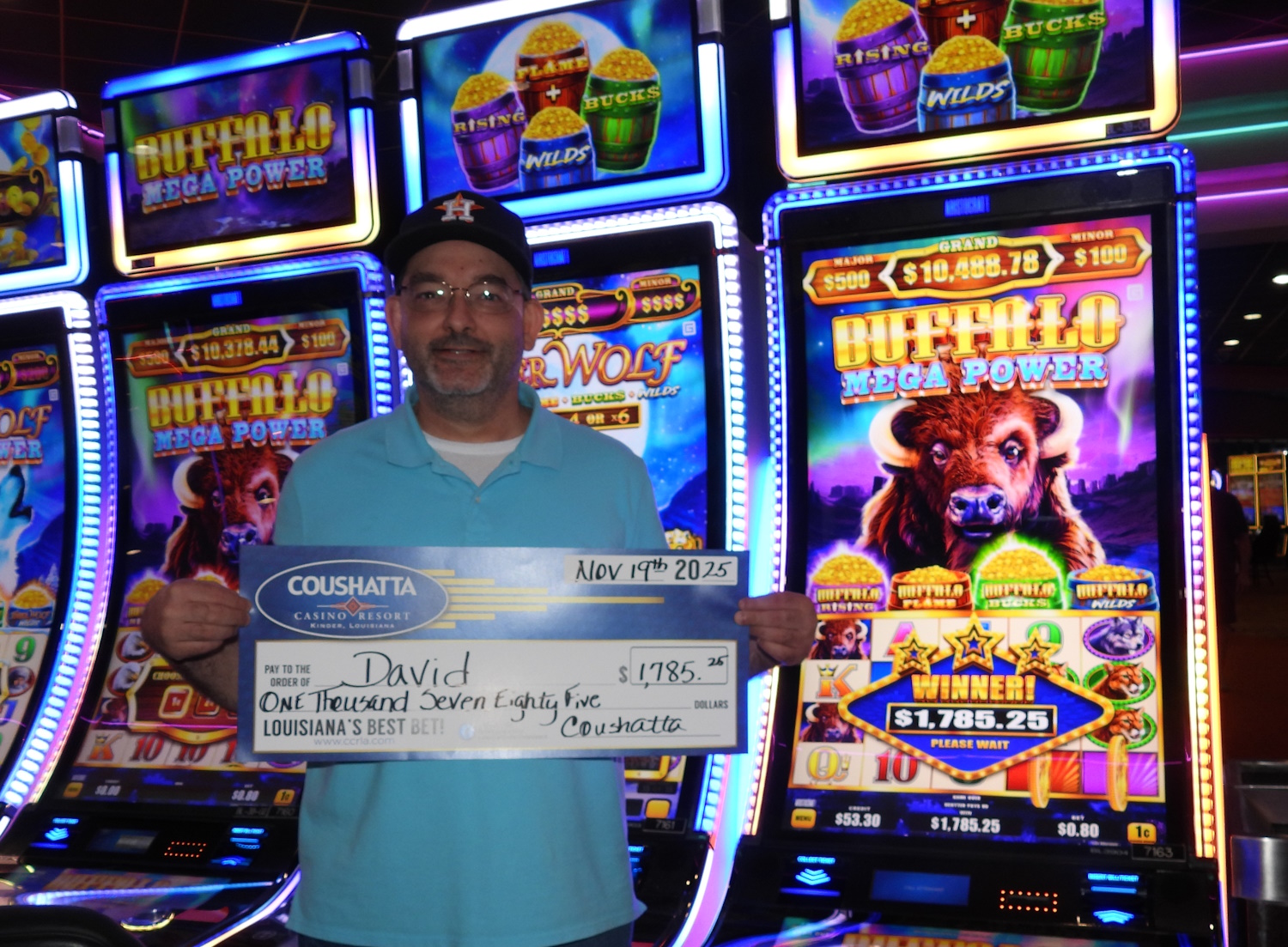 Congratulations to David--on November 19, 2025 this lucky guest hit the jackpot while playing the Buffalo Mega Power slot game and won $1,785!