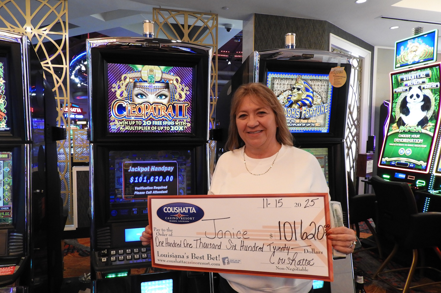 Congratulations to Janice--on November 15, 2025 this lucky guest hit the jackpot while playing the Cleopatra II slot game and won $101,620!