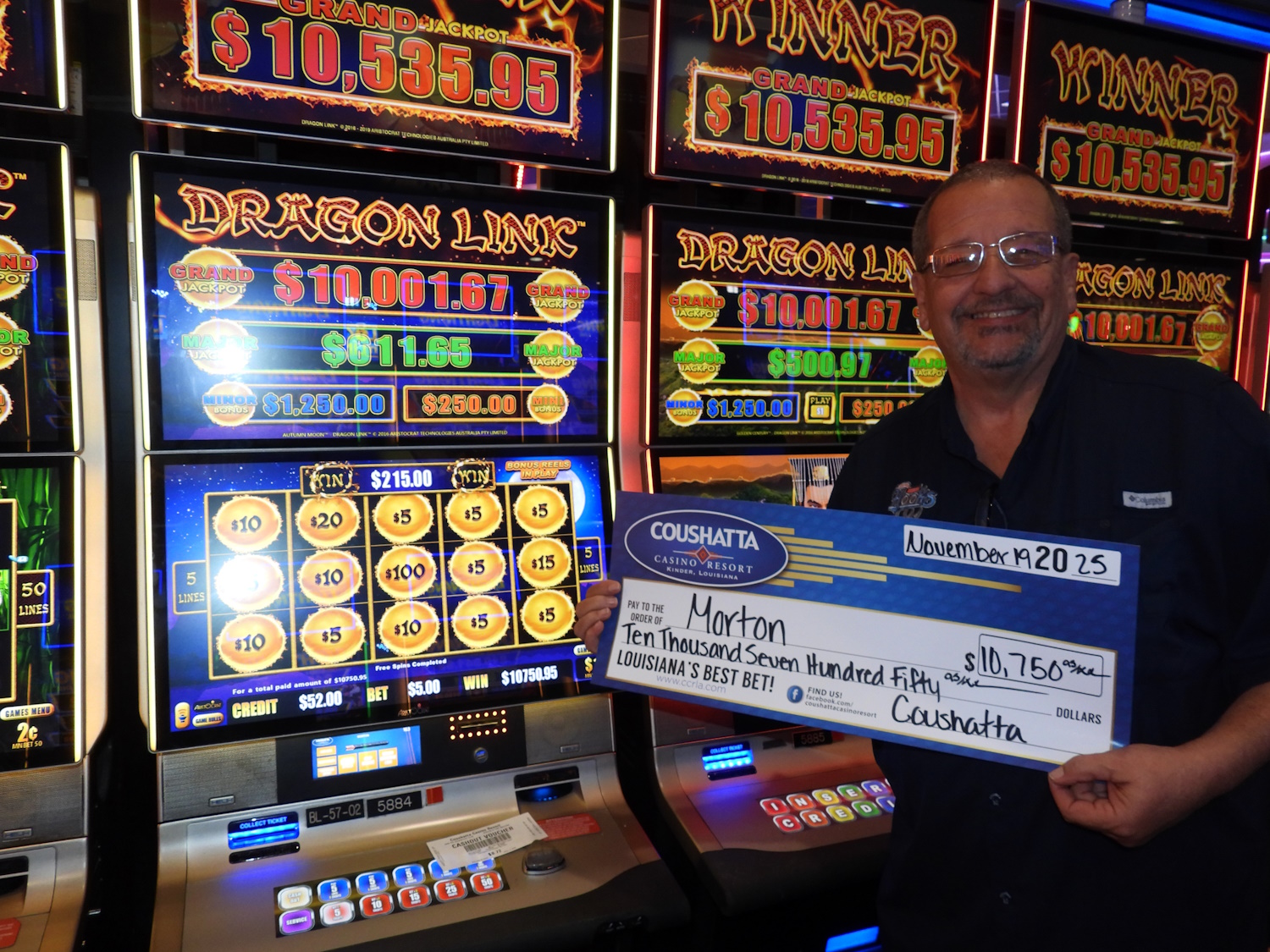 Congratulations to Morton--on November 19, 2025 this lucky guest hit the jackpot while playing the Dragon Link slot game and won $10,750!