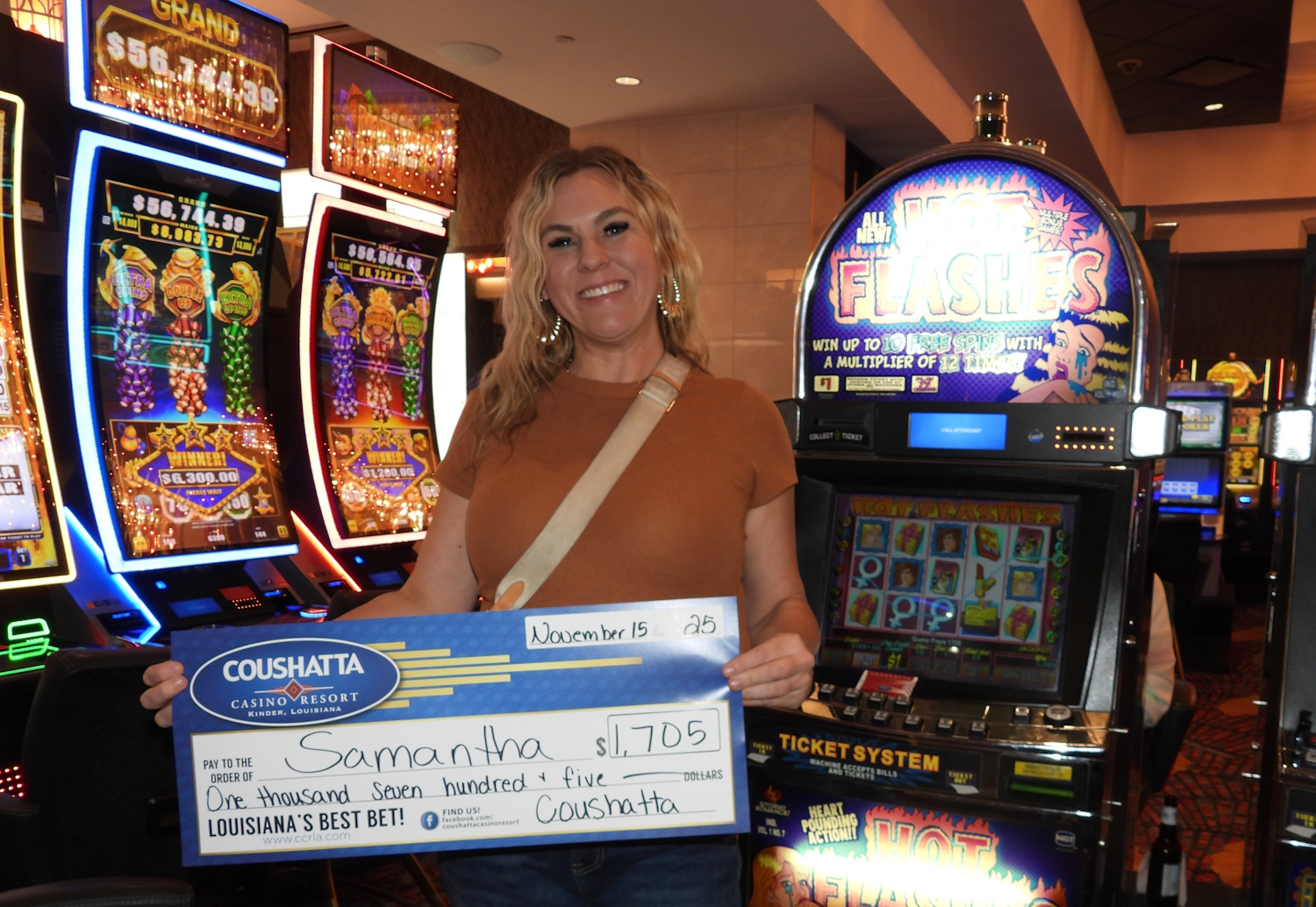 Congratulations to Samantha--on November 15, 2025 this lucky guest hit the jackpot while playing the Hot Flashes slot game and won $1,705!
