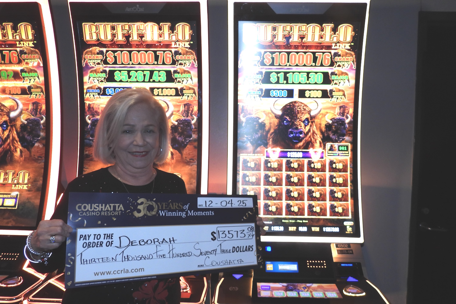Congratulations to Deborah--on December 4, 2025 this lucky guest hit the jackpot while playing the Buffalo Link slot game and won $13,573!